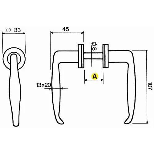 Béquille double alu pour portes métalliques C8