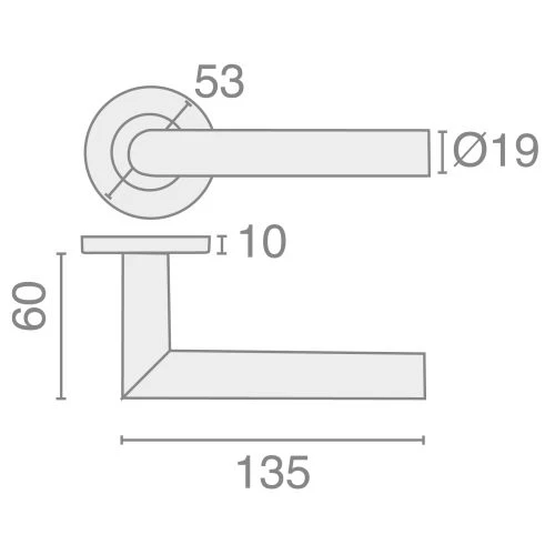 Tige carrée percée de 7mm et et kit de fixation pour porte allant jusque 56mm d’épaisseur.