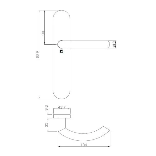 Tige carrée de 7mm et kit de fixation pour porte allant jusque 56mm d’épaisseur.